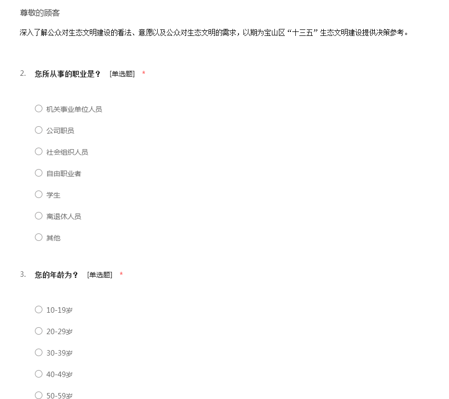 深入了解公众对生态文明建设的看法、意愿以及公众对生态文明的需求,以期为宝山区“十三五”生态文明建设提供决策参考。