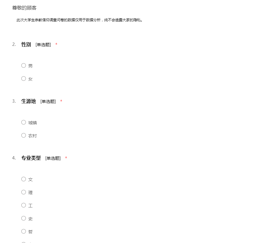 此次大学生宗教信仰调查问卷的数据仅用于数据分析,纯不会透露大家的隐私。