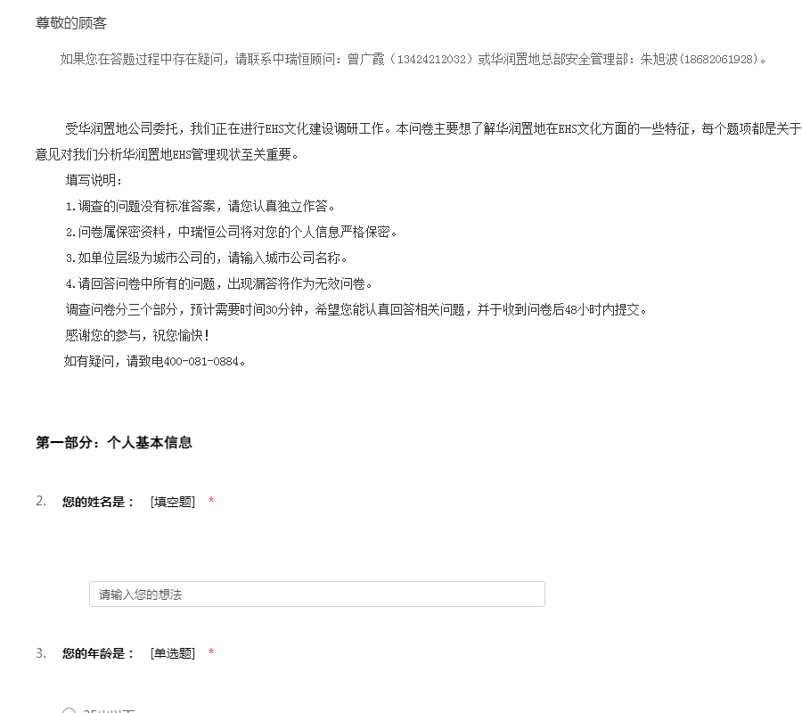 如果您在答题过程中存在疑问,请联系中瑞恒顾问:曾广霞(13424212032)或华润置地总部安全管理部:朱旭波(18682061928)。