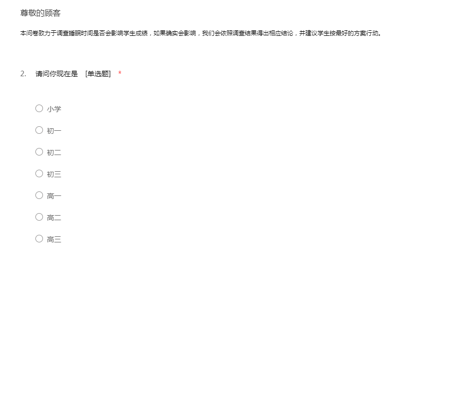 本问卷致力于调查睡眠时间是否会影响学生成绩,如果确实会影响,我们会依照调查结果得出相应结论,并建议学生按最好的方案行动。