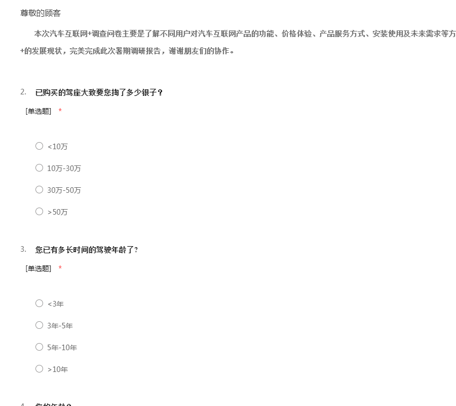 汽车互联网市场(消费者)调查问卷