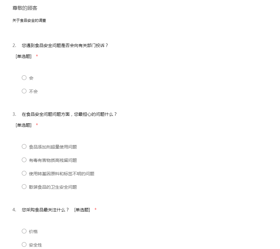 关于食品安全的调查