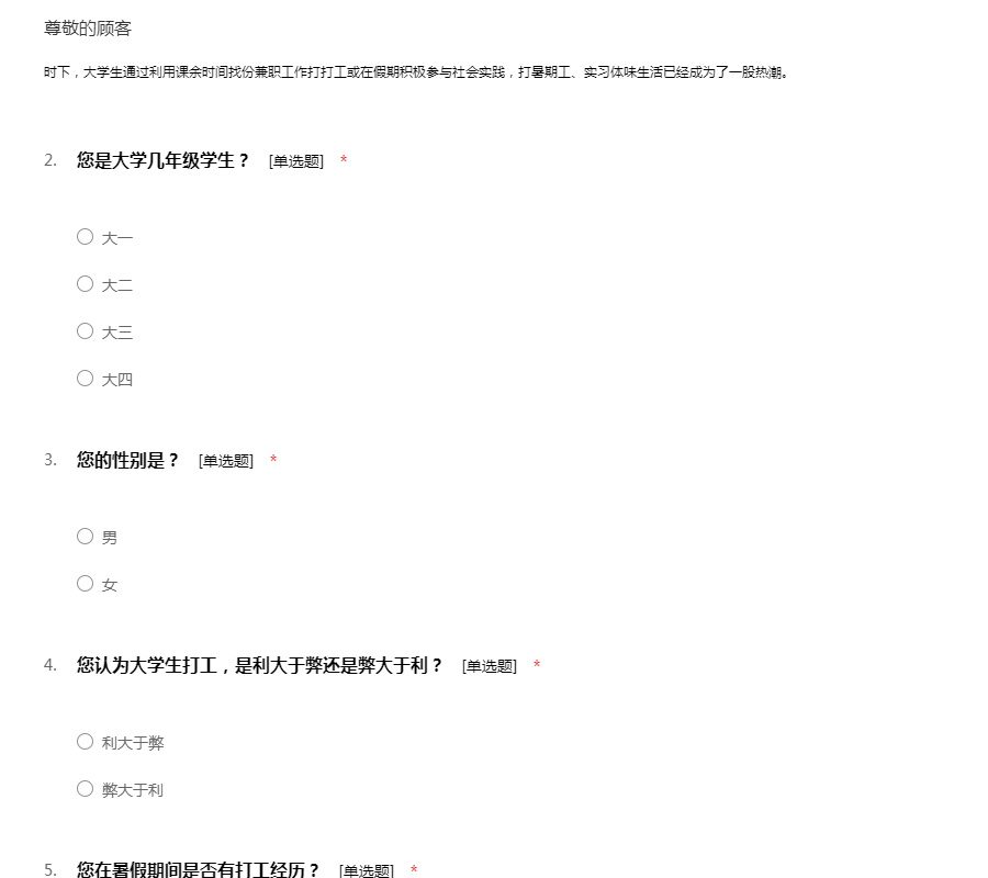 大学生暑期打工的调查问卷