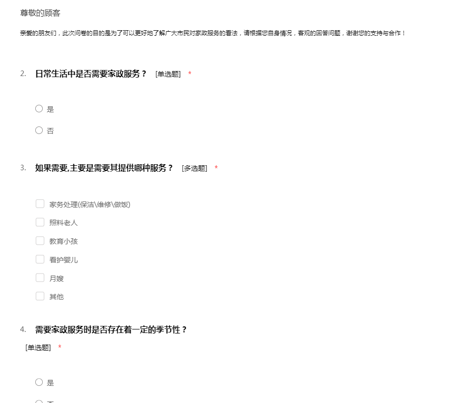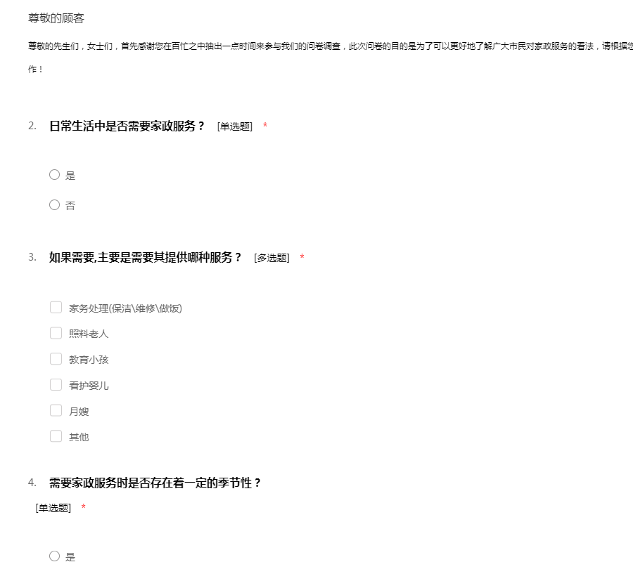 家政服务调查问卷