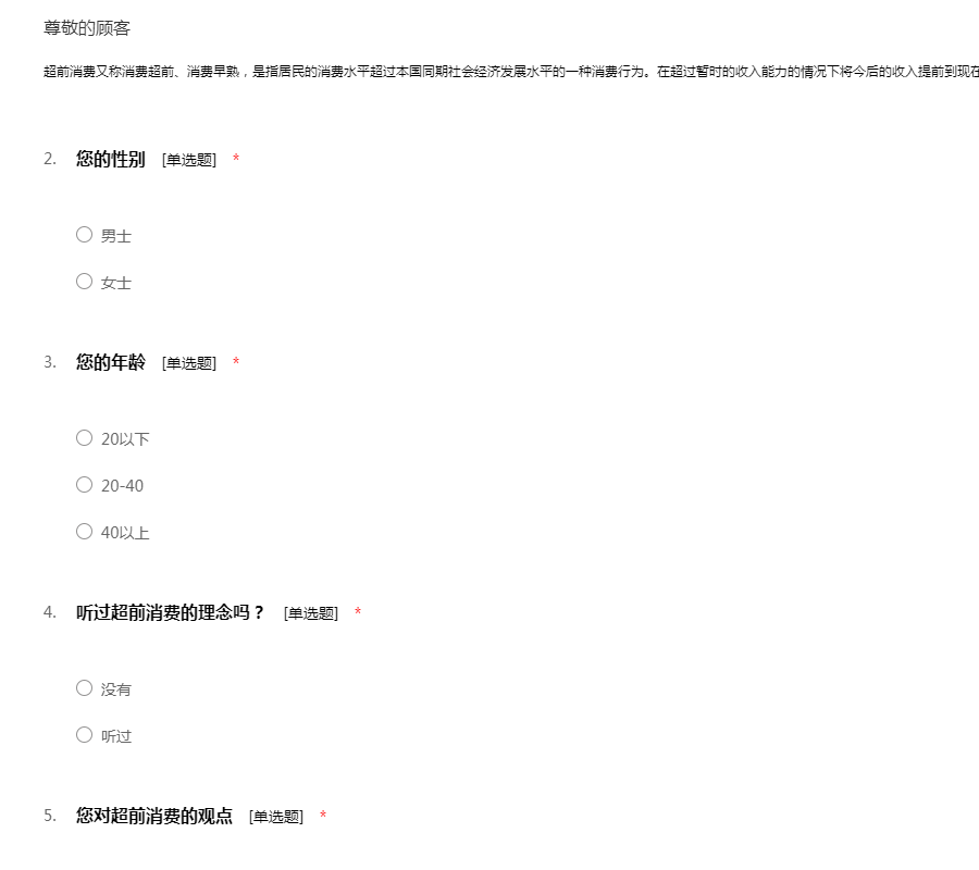 关于现有的超前消费的调查