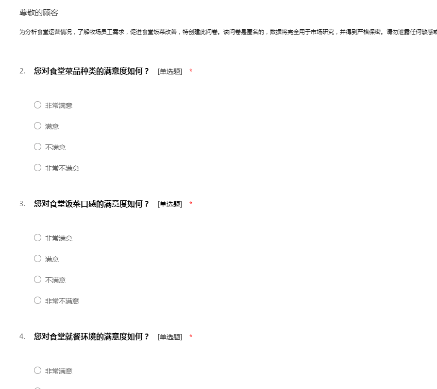 为分析食堂运营情况,了解牧场员工需求,促进食堂饭菜改善,特创建此问卷。该问卷是匿名的,数据将完全用于市场研究,并得到严格保密。请勿泄露任何敏感或机密的信息。
