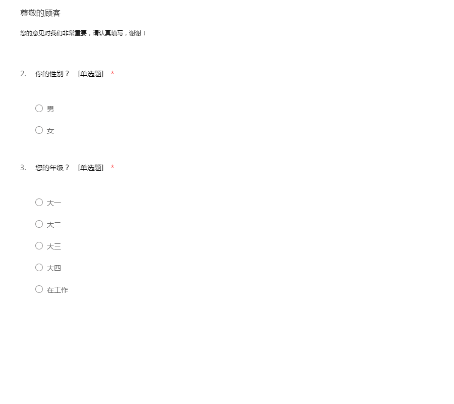 感谢您百忙之中抽出时间来填写这份问卷,您的意见对我们非常重要,请认真填写,谢谢!