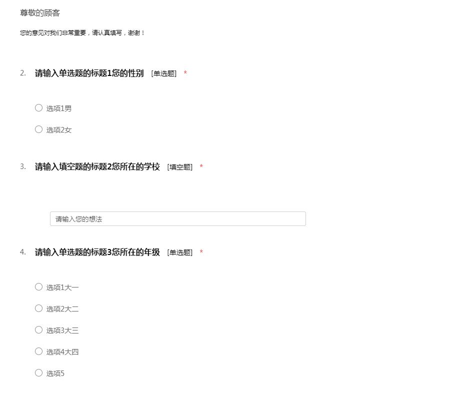 您好!为更好的了解我校的办学水平,了解家长对教育的需求,进一步提高服务质量,我们真诚邀请您参与我们的问卷调查(不记名调查),您的意见和建议是我们不断进步的永恒动力!