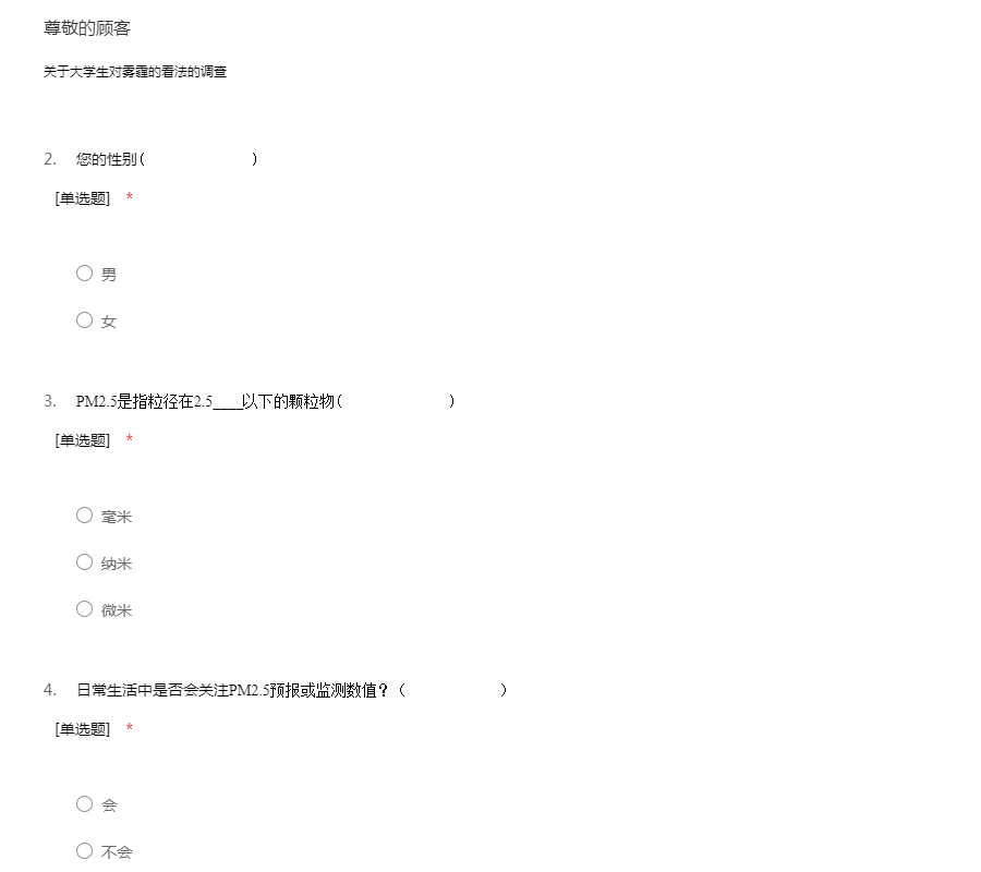 大学生关于雾霾调查问卷