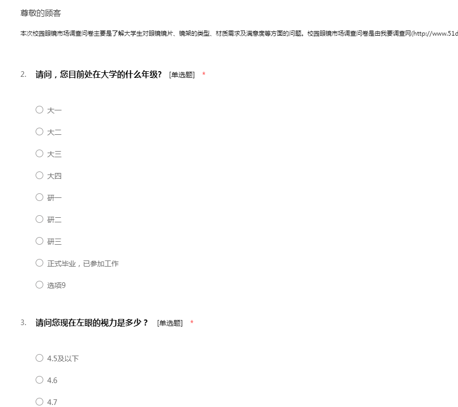 校园眼镜市场调查问卷