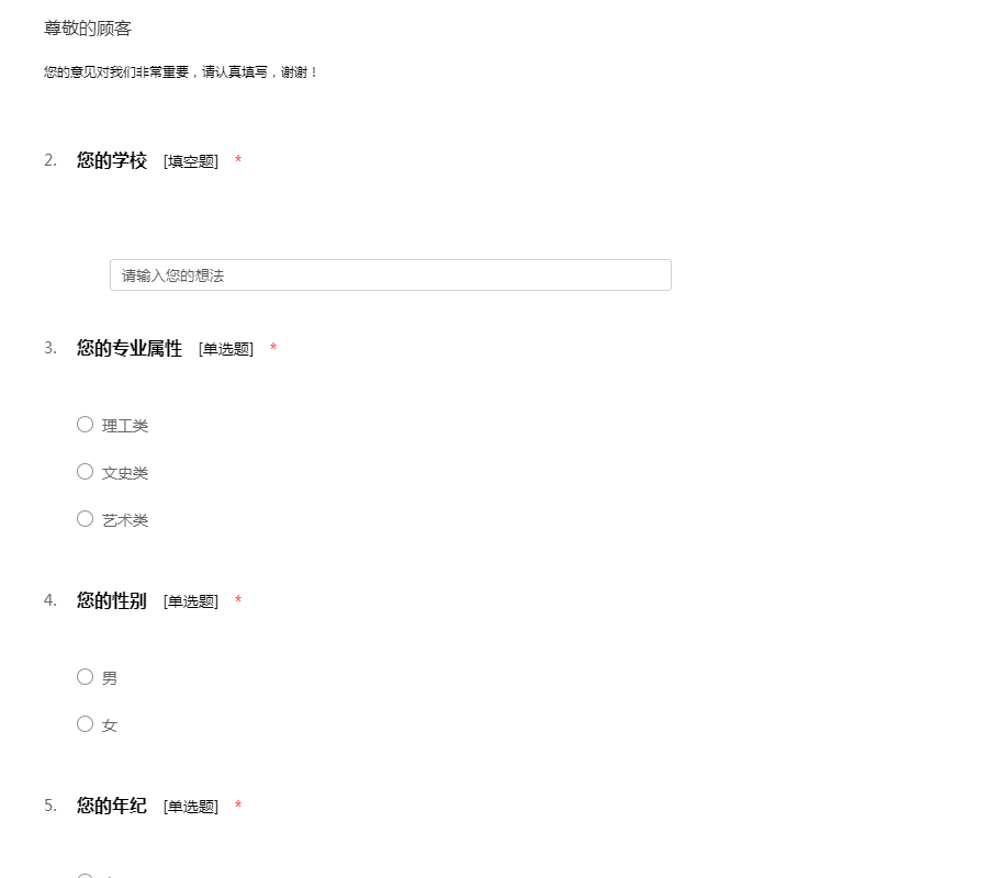 您的意见对我们非常重要,请认真填写,谢谢!