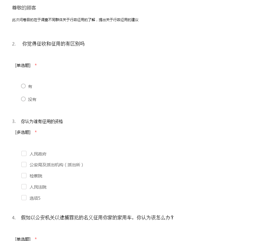 此次问卷目的在于调查不同群体关于行政征用的了解,提出关于行政征用的建议