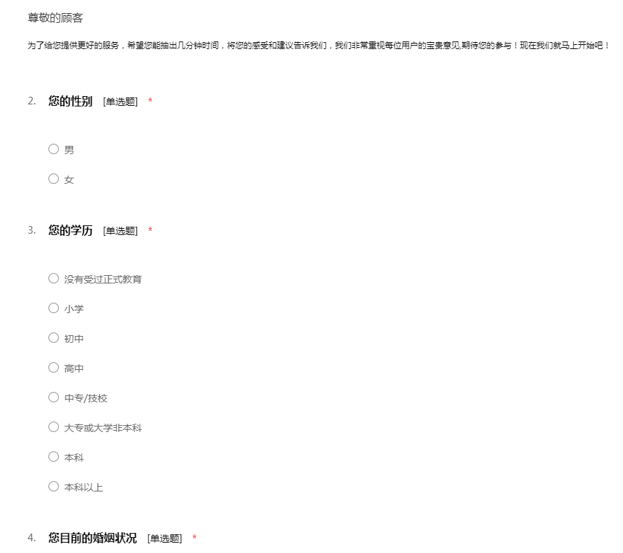 为了给您提供更好的服务,希望您能抽出几分钟时间,将您的感受和建议告诉我们,我们非常重视每位用户的宝贵意见,期待您的参与!现在我们就马上开始吧!