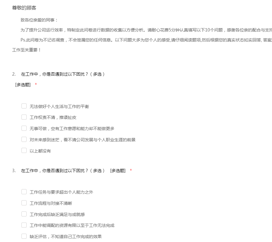员工工作环境满意度问卷模板