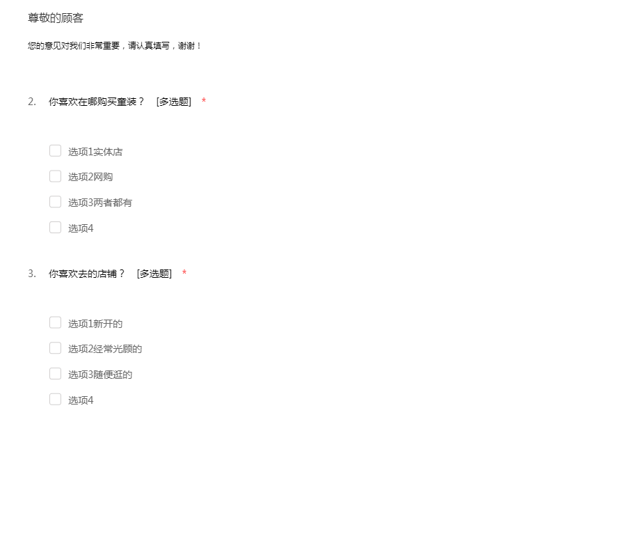 尊敬的先生/女士:您好!非常感谢您参与本次答卷!我们正在进行一项有关童装市场的小调查。您的观点和意见会被严格保密,最终仅被用于汇总后的统计分析,请您放心填写。