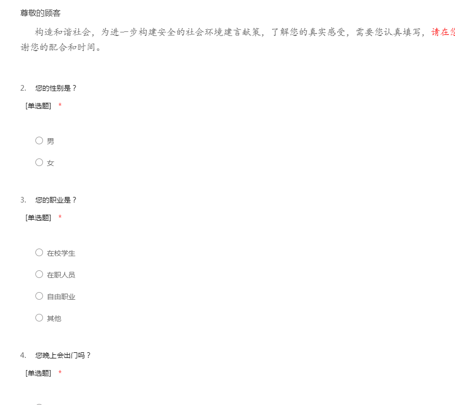 关于社会安全感现状和原因调查问卷