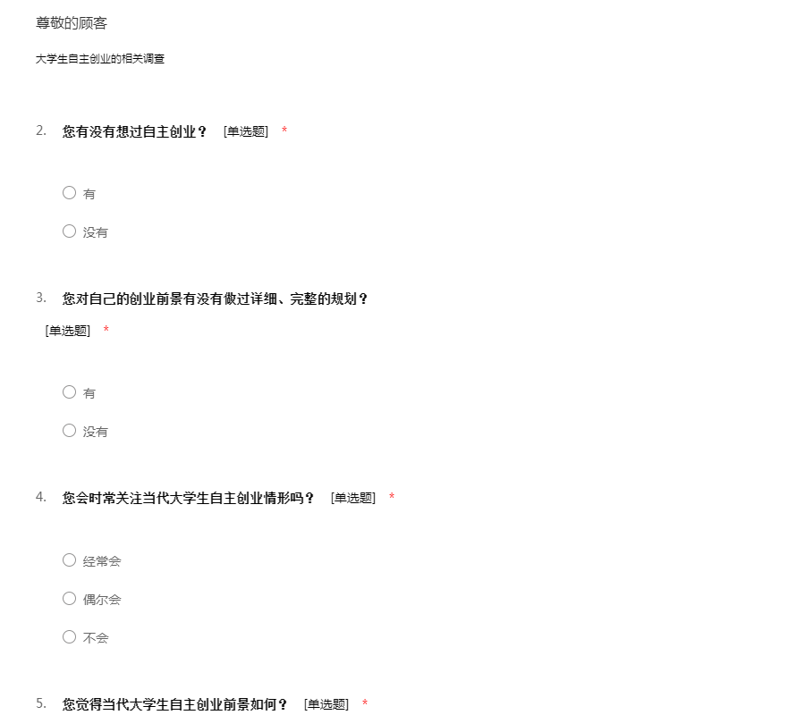 大学生创业调查