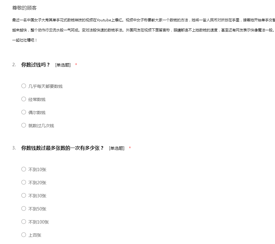 数钱方法问卷调查表