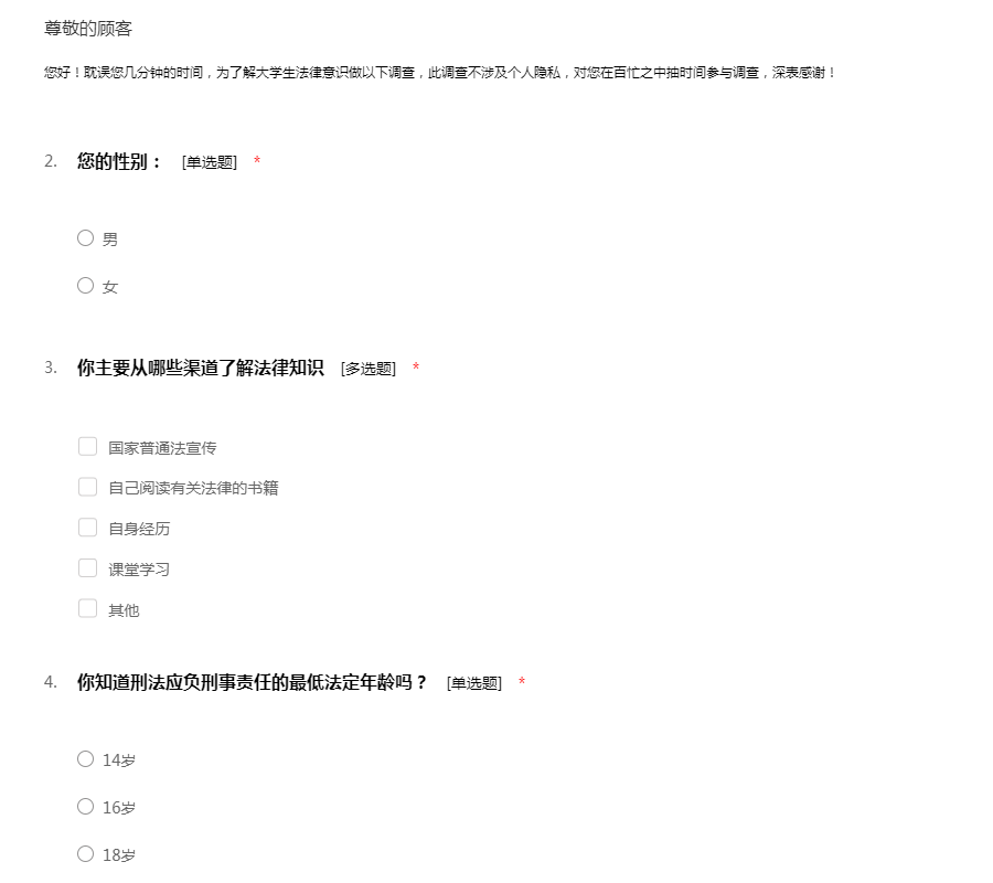 大学生思想道德修养与法律基础调查问卷