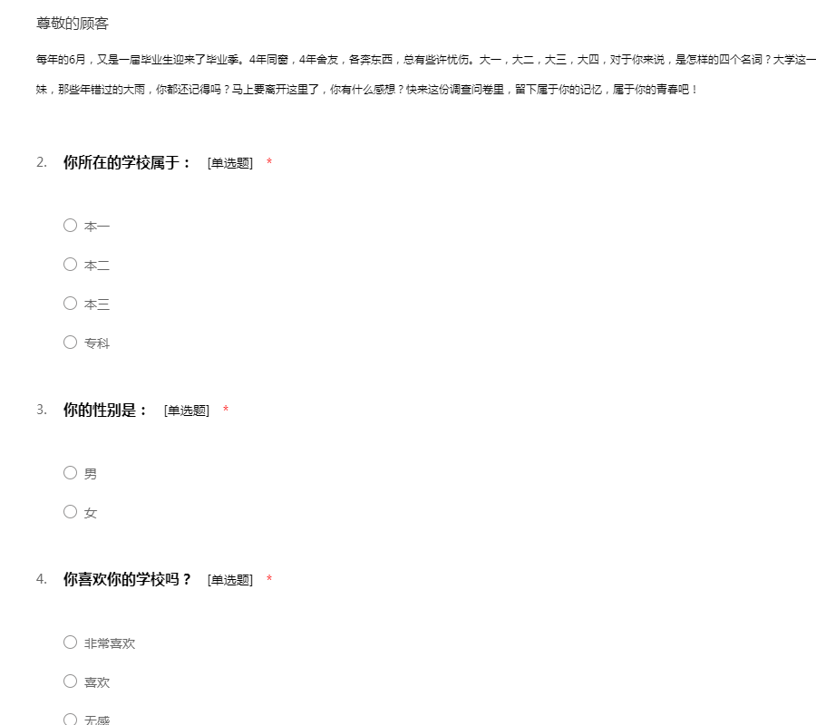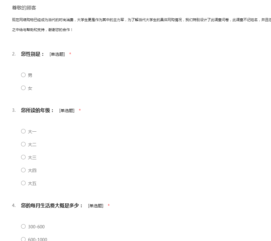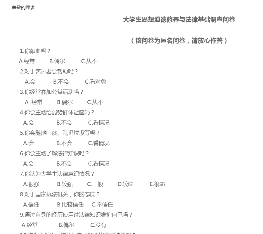 (该问卷为匿名问卷,请放心作答)