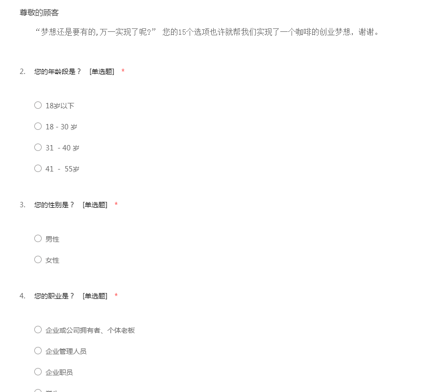 “梦想还是要有的,万一实现了呢?” 您的15个选项也许就帮我们实现了一个咖啡的创业梦想,谢谢。