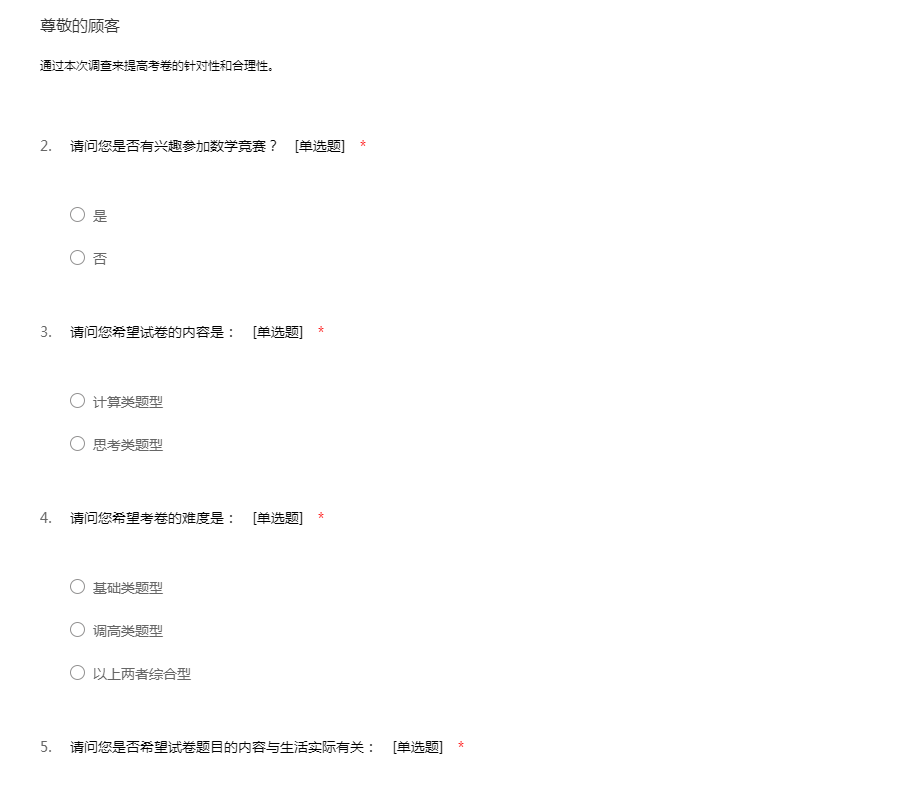 您好!为更好的了解我校的办学水平,了解家长对教育的需求,进一步提高服务质量,我们真诚邀请您参与我们的问卷调查(不记名调查),您的意见和建议是我们不断进步的永恒动力!