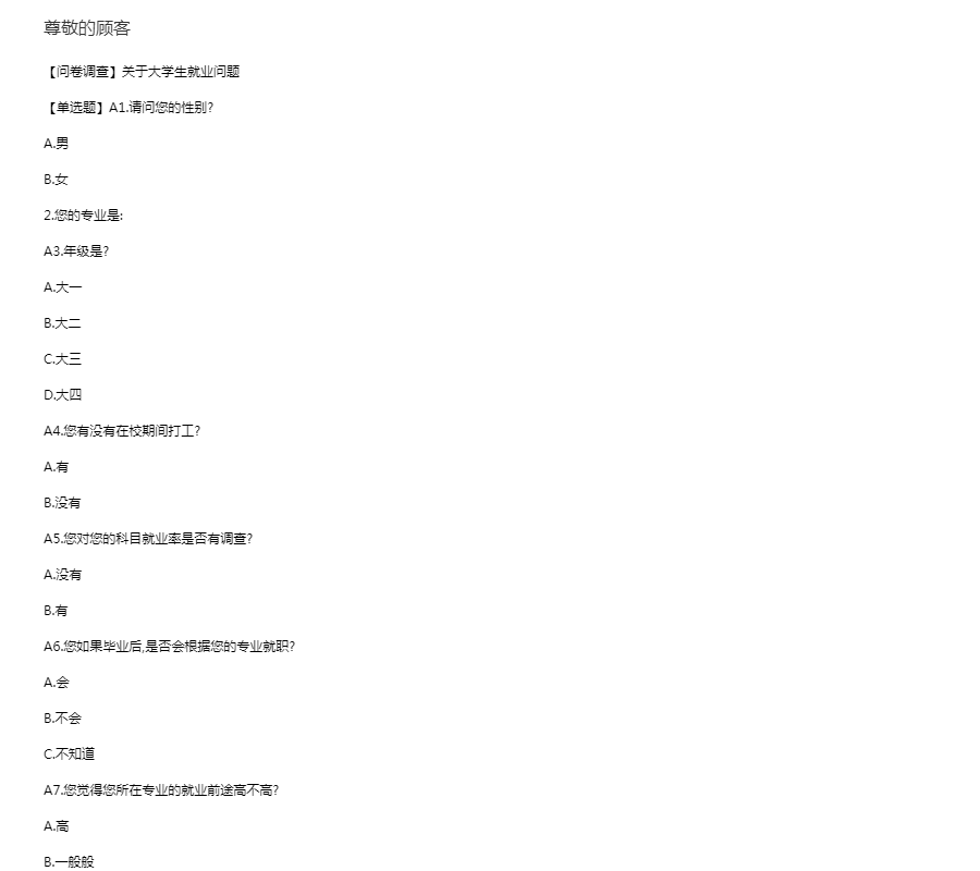 【问卷调查】关于大学生就业问题