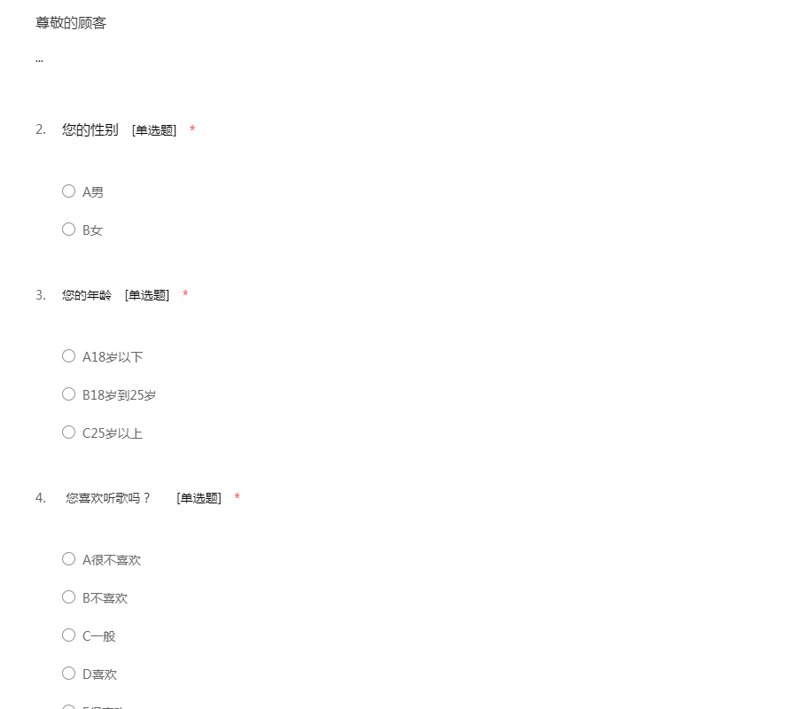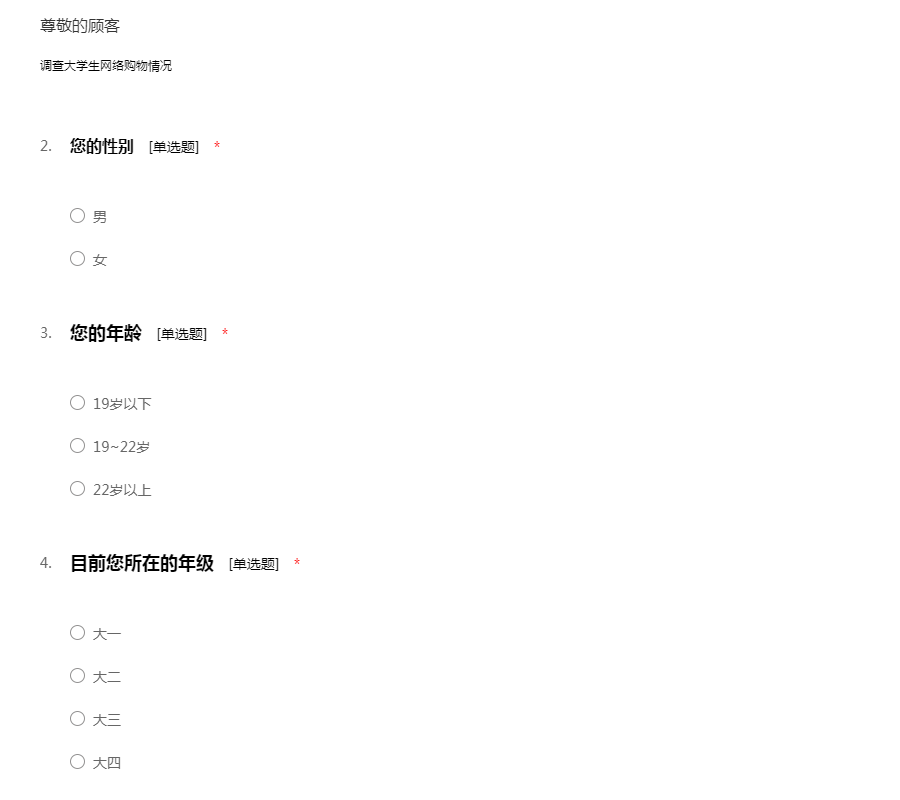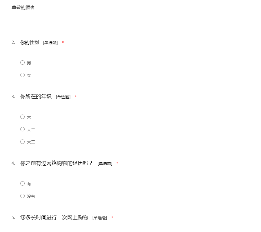 亲爱的朋友,您好!我们现在正在对人们的日常消费情况进行研究,特此设计了这份问卷调查表。本问卷采取不记名方式,所以请不要有所顾虑。希望能得到您最真诚的回答。感谢您的支持!