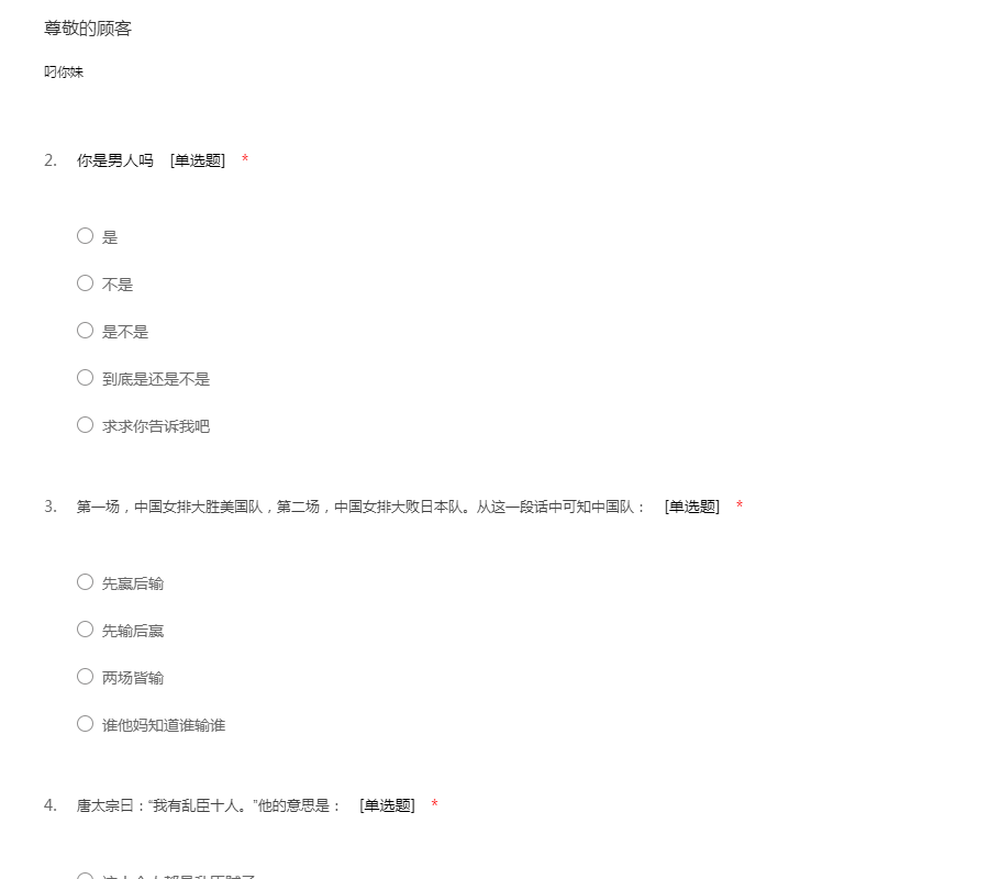您好!为更好的了解我校的办学水平,了解家长对教育的需求,进一步提高服务质量,我们真诚邀请您参与我们的问卷调查(不记名调查),您的意见和建议是我们不断进步的永恒动力!