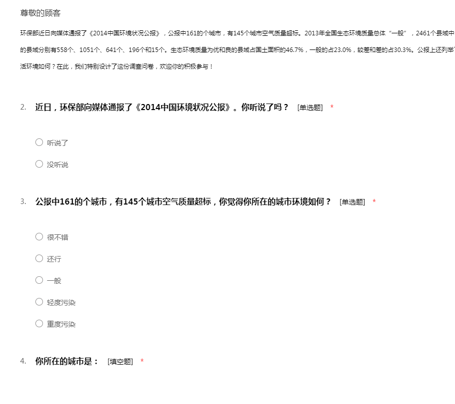工作环境:包含工作管理环境和周边的自然环境,还有工作的安全性:该要项的设置目的是用于测量您的员工如何看待诸如他们的工作环境条件、设备工具的质量以及在工作场所当中对于安全的整体意识等方面问题。每一个组织都要对员工的健康和安全负责。一个缺乏安全保障的工作环境将导致各类事故、法律诉讼和工作延迟等一系列问题。所有这些事故可能给您的组织带来非常巨大的损失。该要项下的所有问题将调查您的员工对于公司的设施工具是否满意,他们是否相信工作是在以一种安全的方式进行,以及提供给他们的工具设备是否能够满足他们去安全成功地完成工作。员工工作环境满意度问卷模板由我要调查网(http://www.51diaocha.com)提供。