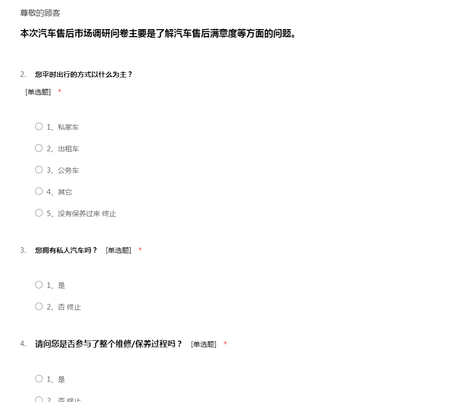 本次汽车售后市场调研问卷主要是了解汽车售后满意度等方面的问题。