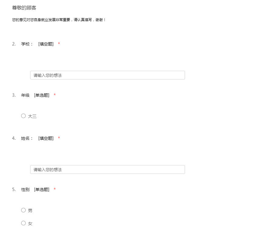 您的意见对您自身就业发展非常重要,请认真填写,谢谢!