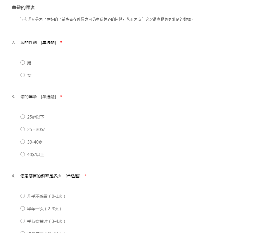 该次调查是为了更好的了解患者在感冒类用药中所关心的问题,从而为我们这次调查提供更准确的数据。