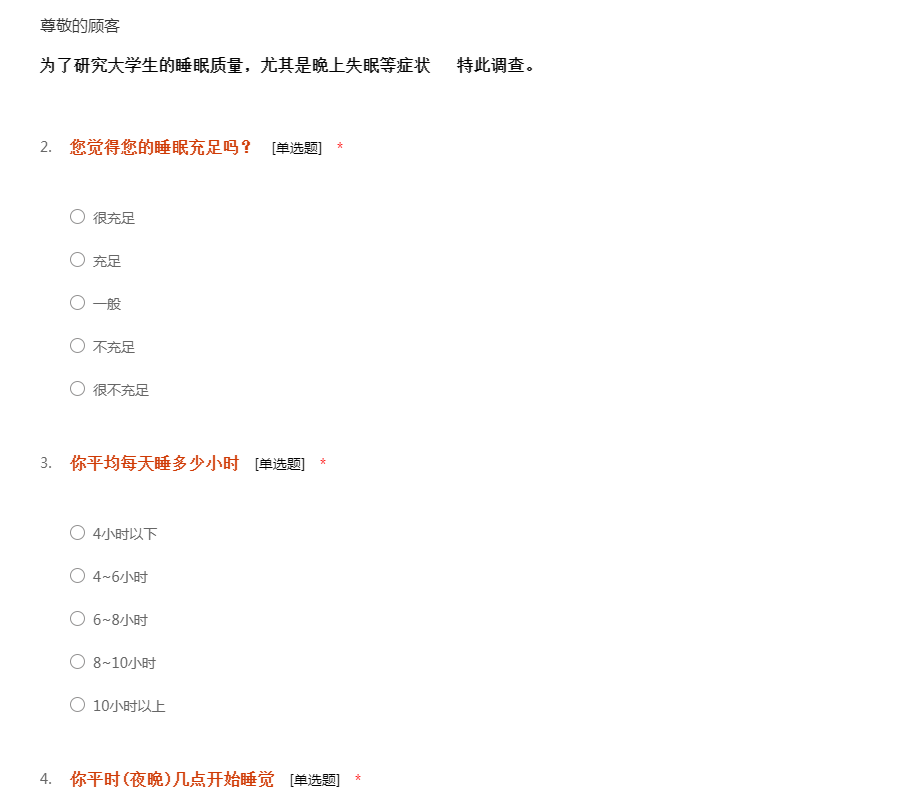 为了研究大学生的睡眠质量,尤其是晚上失眠等症状 特此调查。