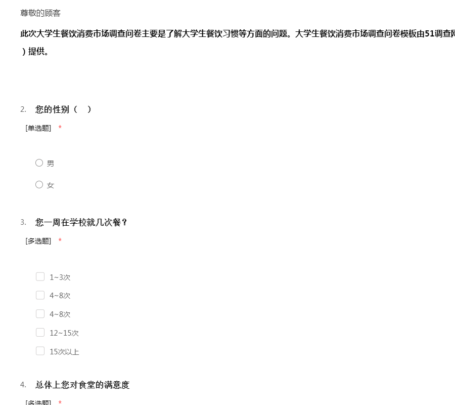 此次大学生餐饮消费市场调查问卷主要是了解大学生餐饮习惯等方面的问题。大学生餐饮消费市场调查问卷模板由51调查网(http://www.51diaocha.com)提供。