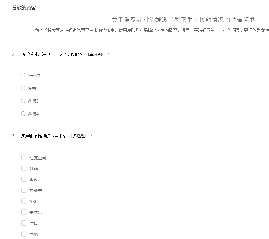 关于洁婷透气型卫生巾的市场调查问卷