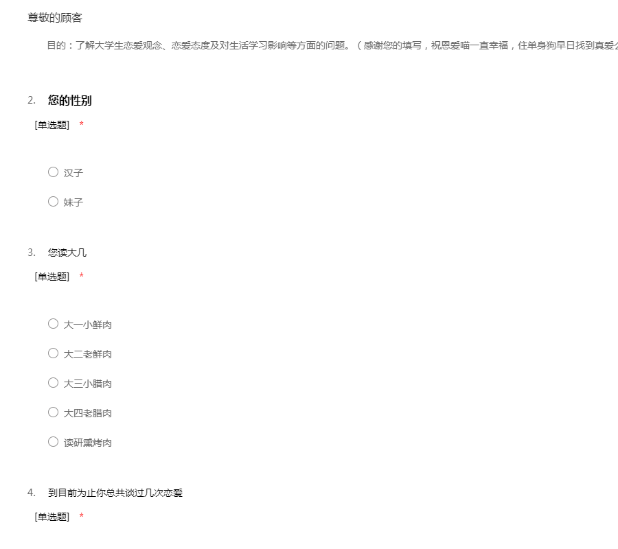 大学生恋爱问卷调查(PS:给单身狗最后的致命一击)