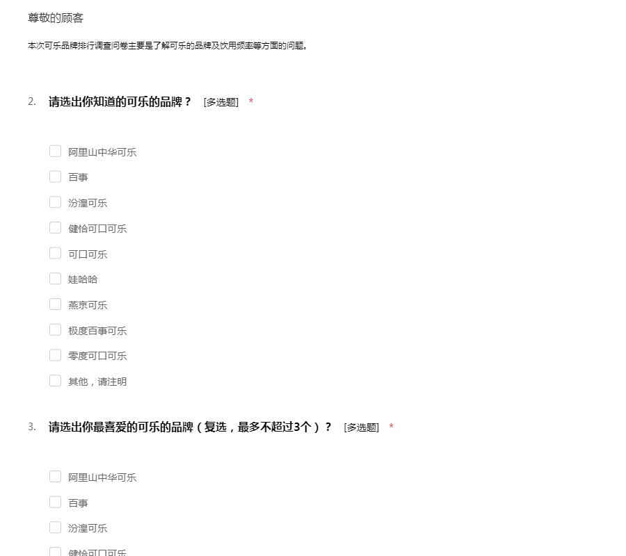 可乐品牌排行调查问卷
