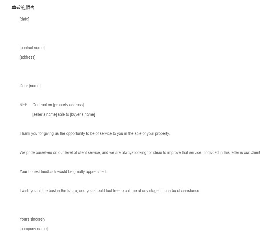 you for giving us the opportunity to be of service to you in the sale of your property.