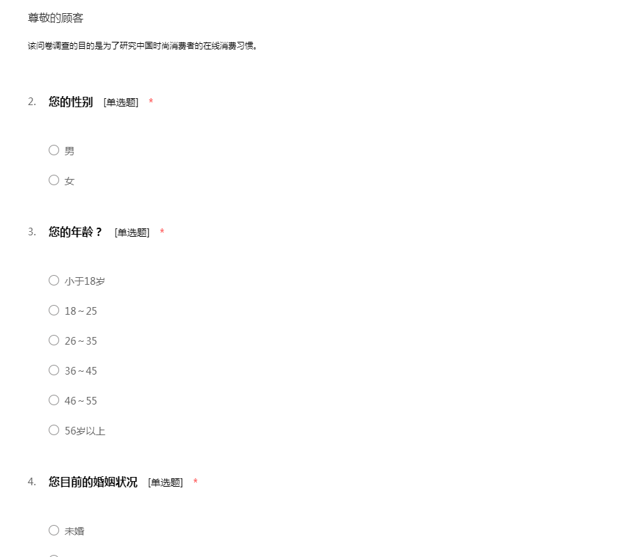 该问卷调查的目的是为了研究中国时尚消费者的在线消费习惯。