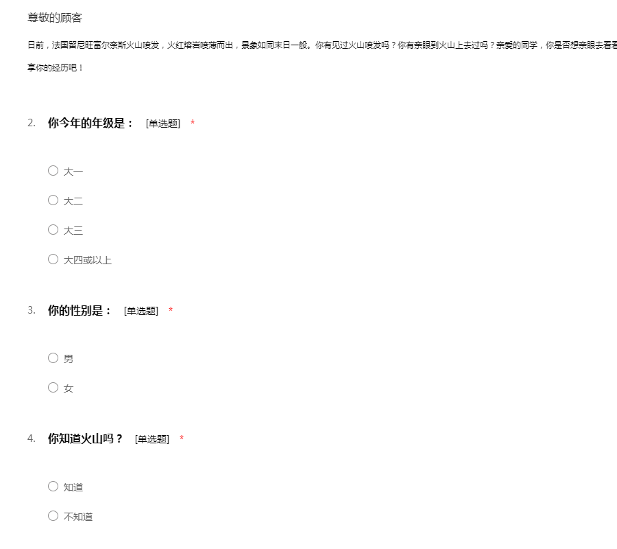 日前,法国留尼旺富尔奈斯火山喷发,火红熔岩喷薄而出,景象如同末日一般。你有见过火山喷发吗?你有亲眼到火山上去过吗?亲爱的同学,你是否想亲眼去看看火山?快来参加我们的问卷调查,与小伙伴们分享你的经历吧!