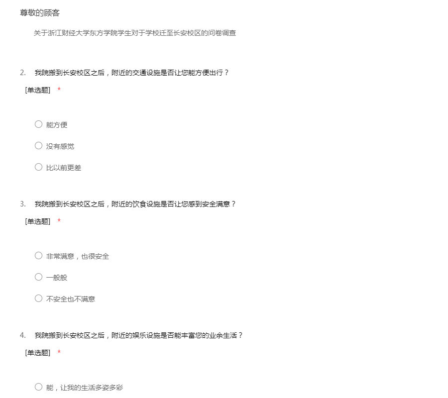 关于浙江财经大学东方学院学生对于学校迁至长安校区的问卷调查