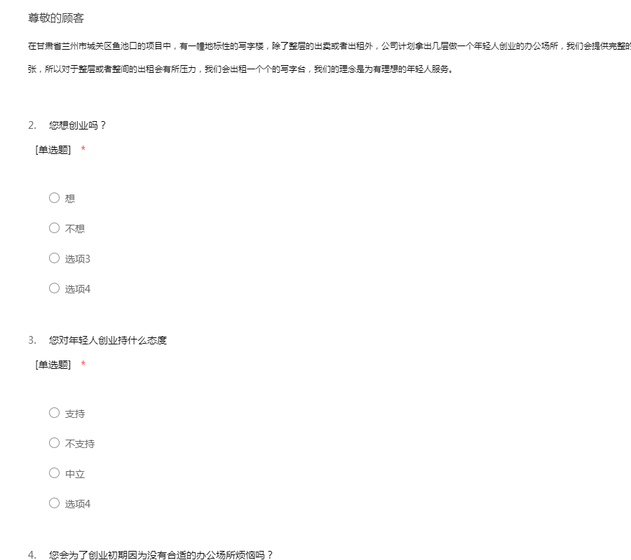 在甘肃省兰州市城关区鱼池口的项目中,有一幢地标性的写字楼,除了整层的出卖或者出租外,公司计划拿出几层做一个年轻人创业的办公场所,我们会提供完整的配套设施,因为年轻人创业初期,资金会比较紧张,所以对于整层或者整间的出租会有所压力,我们会出租一个个的写字台,我们的理念是为有理想的年轻人服务。