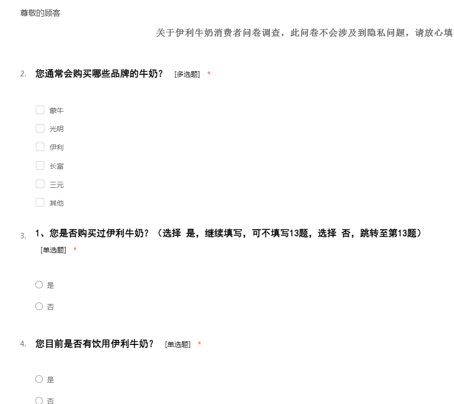 关于伊利牛奶消费者问卷调查,此问卷不会涉及到隐私问题,请放心填写