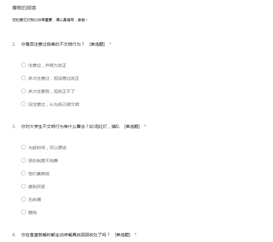 ——亲爱的各位同学: 你好!我们就关于《大学生课外活动调查》的毕业调查问卷。我们想对你进行咨询,需要耽搁你的一些时间,希望能得到你的支持与谅解。感谢你的参与!