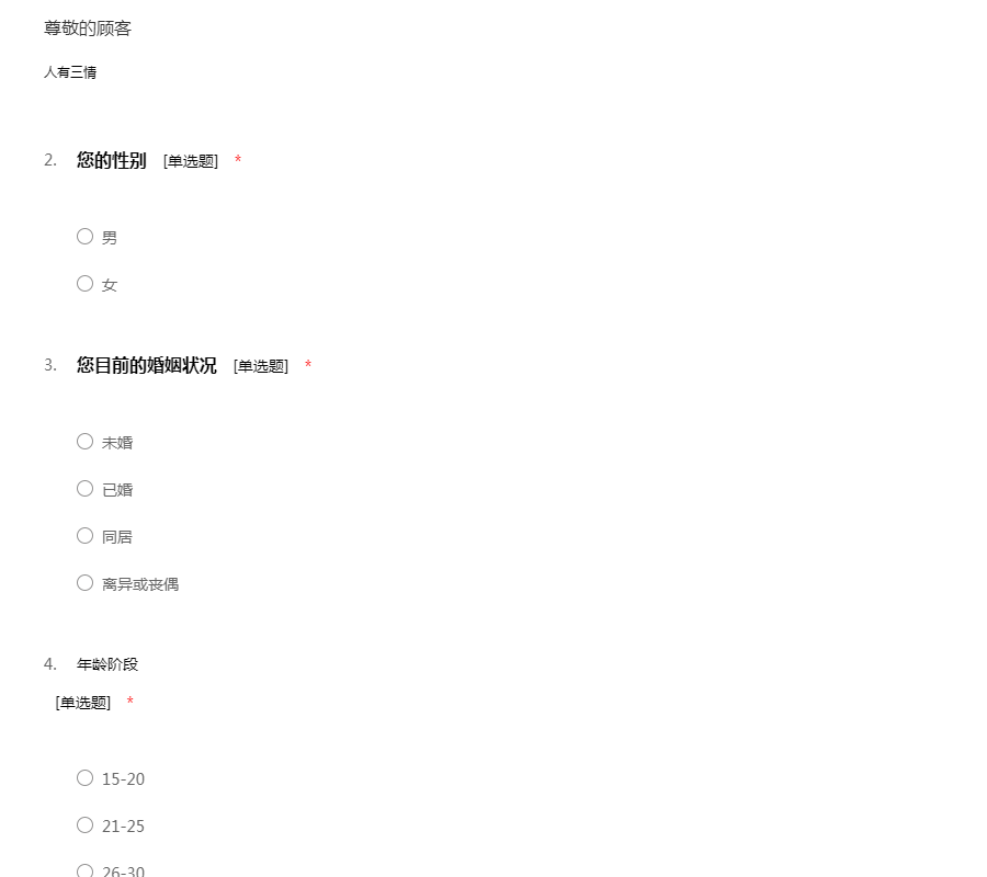 本次问卷调查意在了解当代大学生的恋爱实际情况,您的真实回答对我们来说十分宝贵!感谢您在百忙之中回答此卷!51调查网(我要调查网)谢谢您的参与。