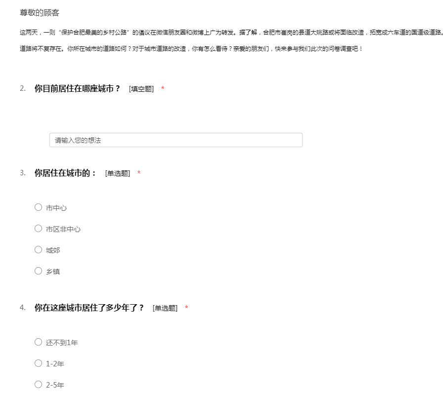 这两天,一则“保护合肥最美的乡村公路”的倡议在微信朋友圈和微博上广为转发。据了解,合肥市崔岗的县道大姚路或将面临改造,拓宽成六车道的国道级道路。如此一来,这条合肥文艺青年心目中的最美乡村道路将不复存在。你所在城市的道路如何?对于城市道路的改造,你有怎么看待?亲爱的朋友们,快来参与我们此次的问卷调查吧!
