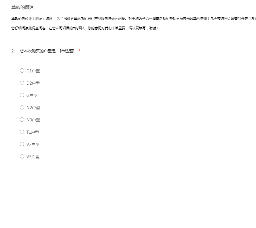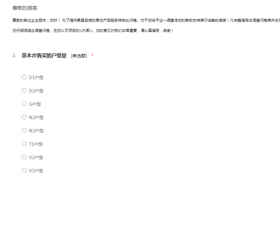 尊敬的各位业主朋友:您好! 为了提供更具品质的居住产品服务特做此问卷。对于您给予这一调查活动的帮助支持表示诚挚的感谢!凡完整填写该调查问卷表并反馈的客户,都将得到我们赠送的精美礼品一份。请您仔细阅读此调查问卷,在您认可项目的□内画√。您的意见对我们非常重要,请认真填写,谢谢!
