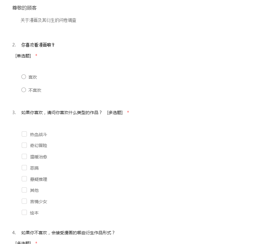 关于漫画及其衍生问卷调查
