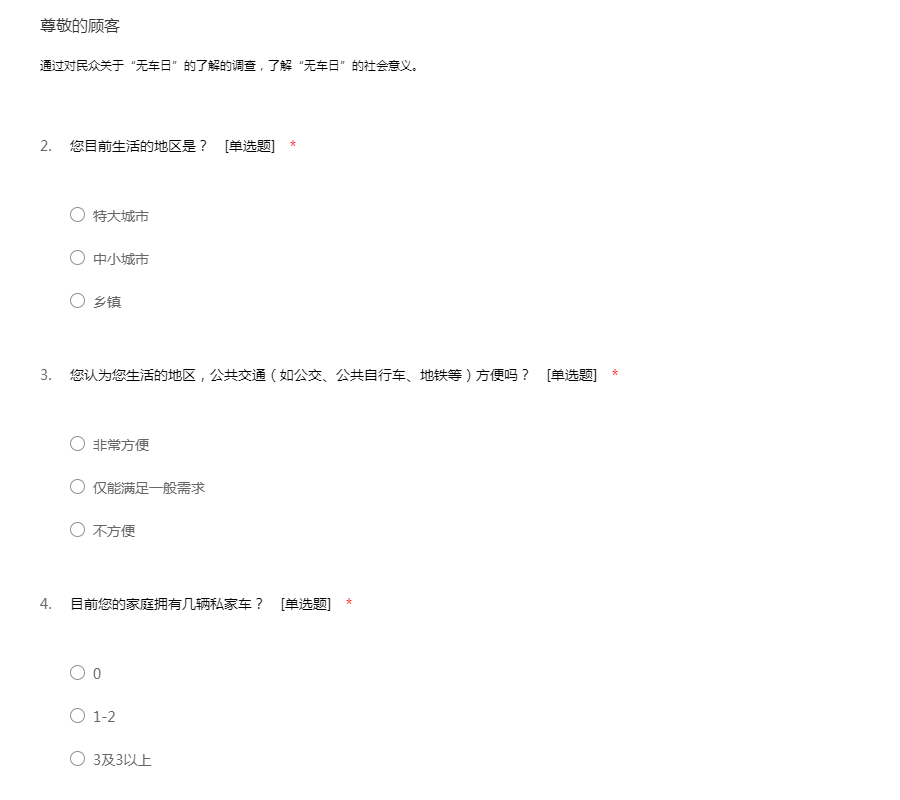 通过对民众关于“无车日”的了解的调查,了解“无车日”的社会意义。